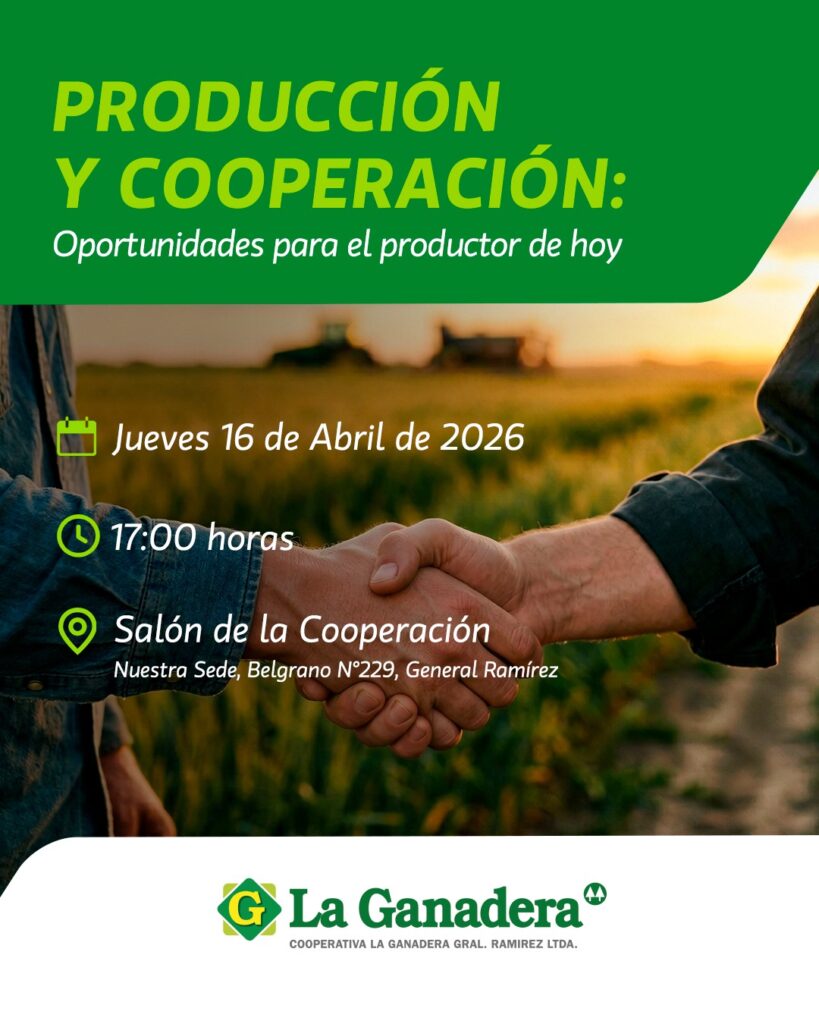Desde Cooperativa La Ganadera de General Ramírez y luego de la suspensión por cuestiones climáticas, convocan a productores y asociados de la región a una reunión informativa para este jueves 16, a las 17, en el Salón de la Cooperación ubicado en calle Belgrano 229.
